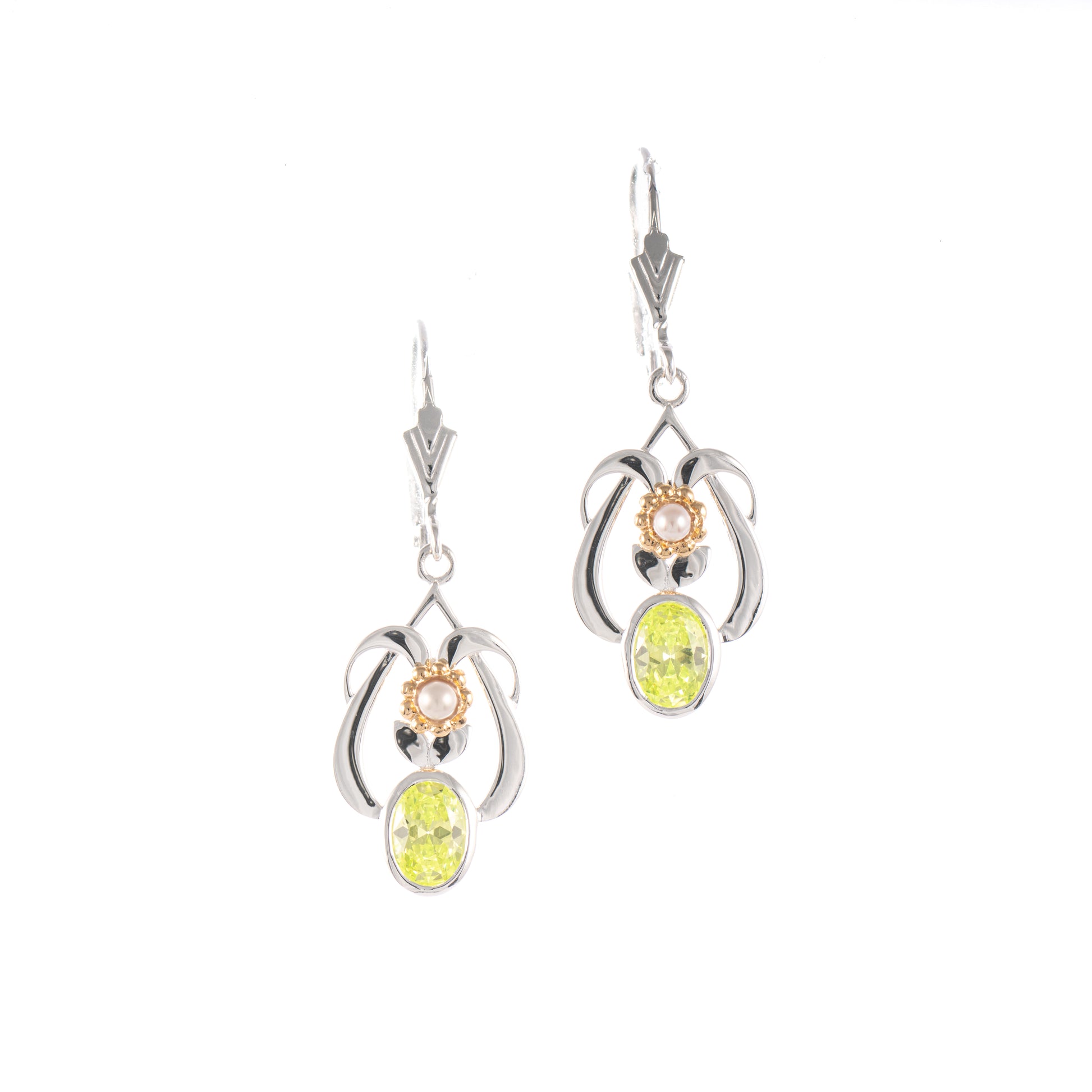 Ohrringe 925 Silber teilvergoldet Zirkonia hellgruen Perle