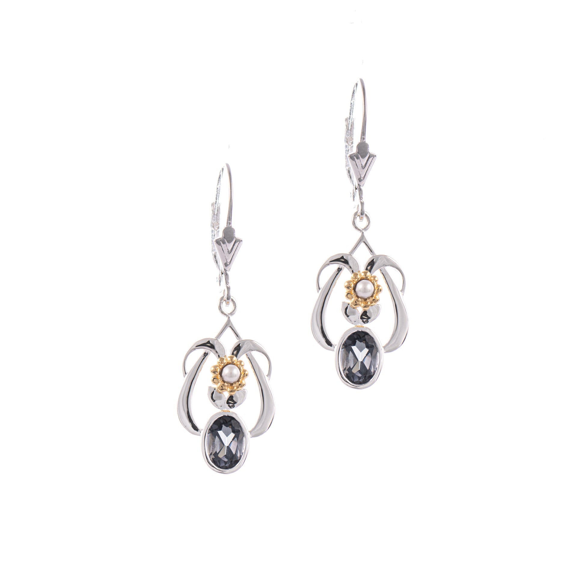 Ohrringe 925 Silber teilvergoldet Zirkonia anthrazit Perle