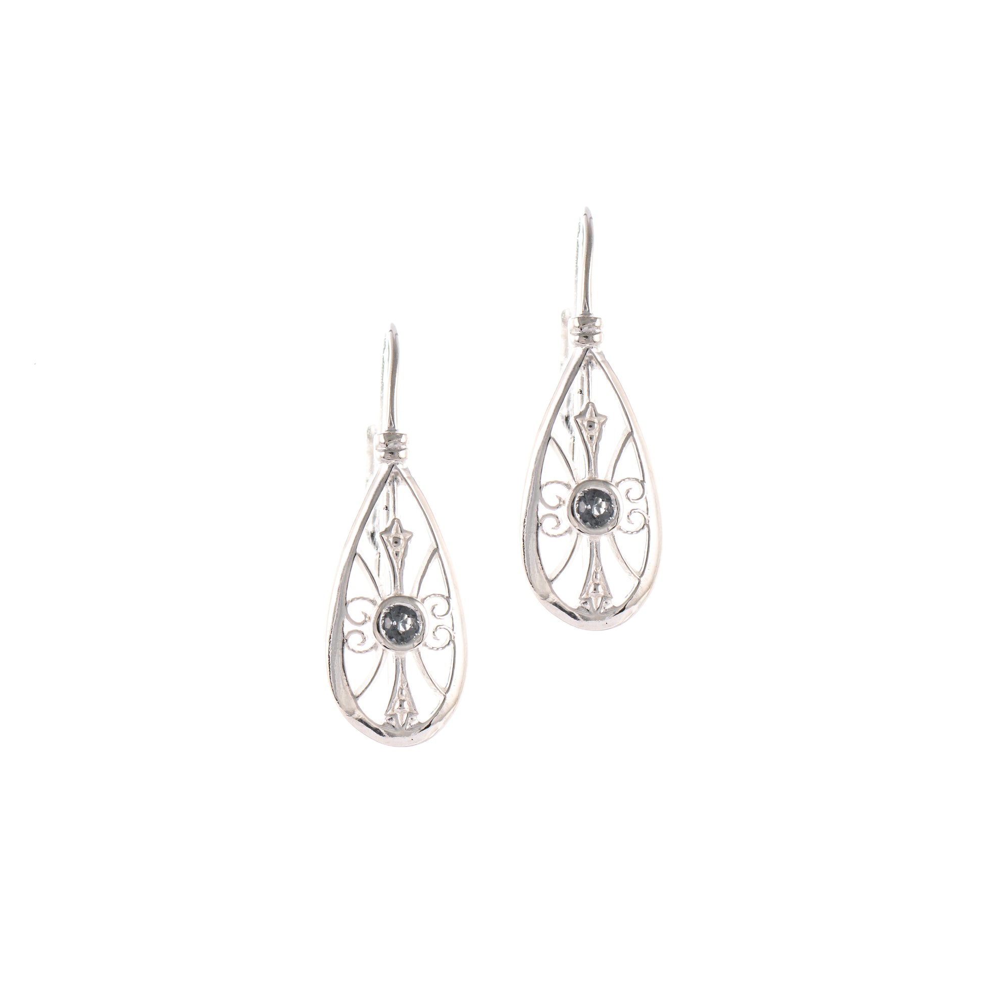 Ohrringe Bouton 925 Silber Zirkonia anthrazit