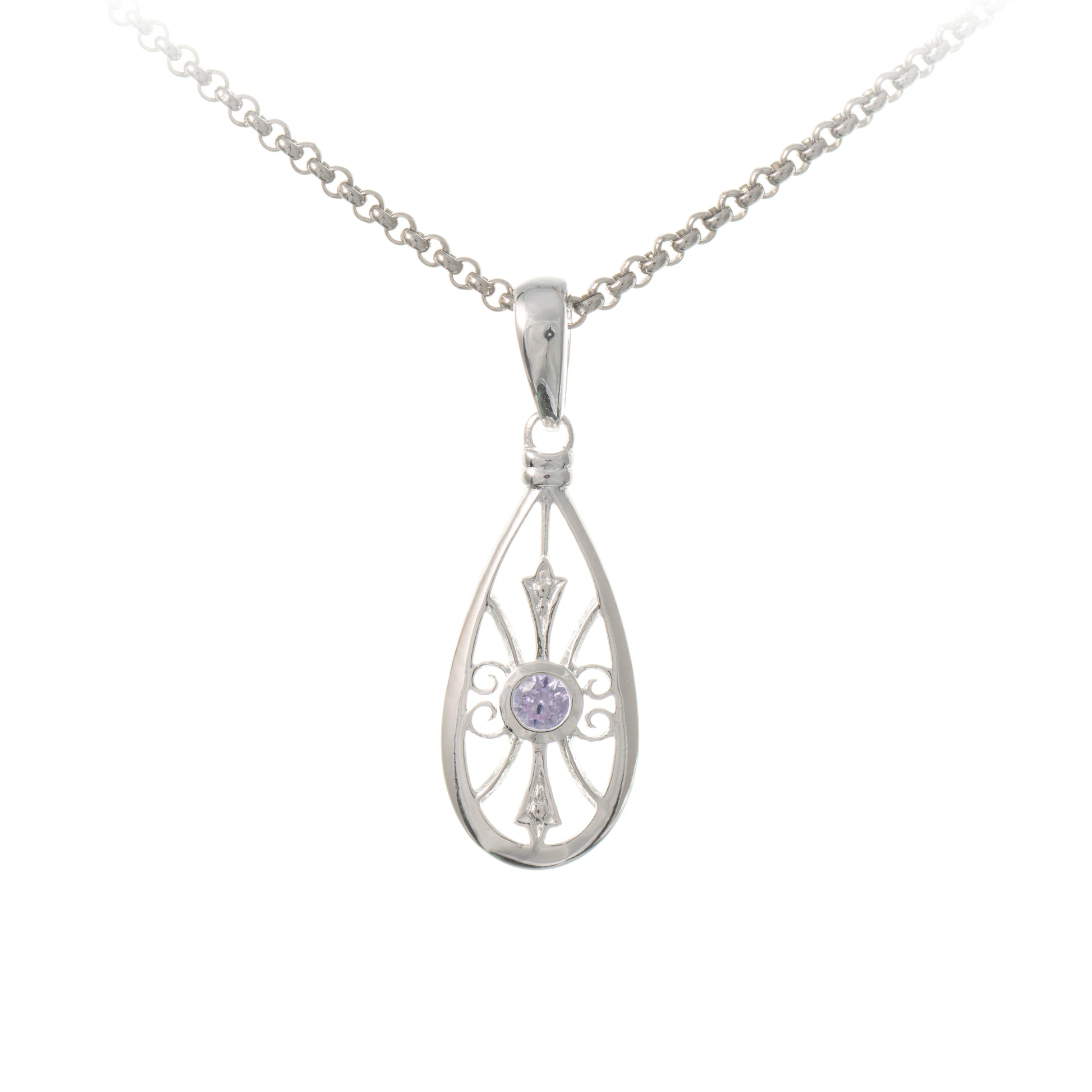 Anhaenger mit Kette 925 Silber Zirkonia flieder