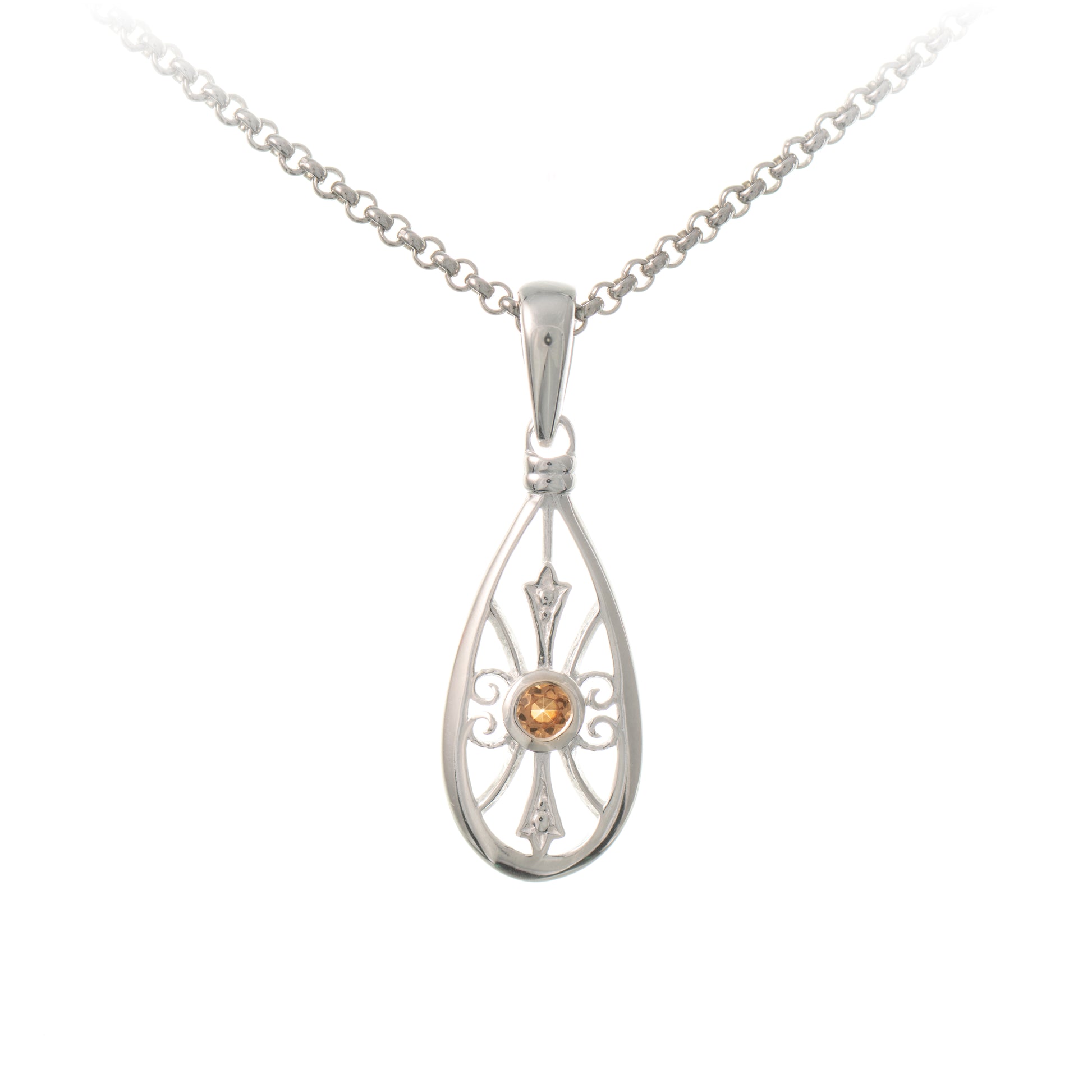 Anhaenger mit Kette 925 Silber Zirkonia cognac