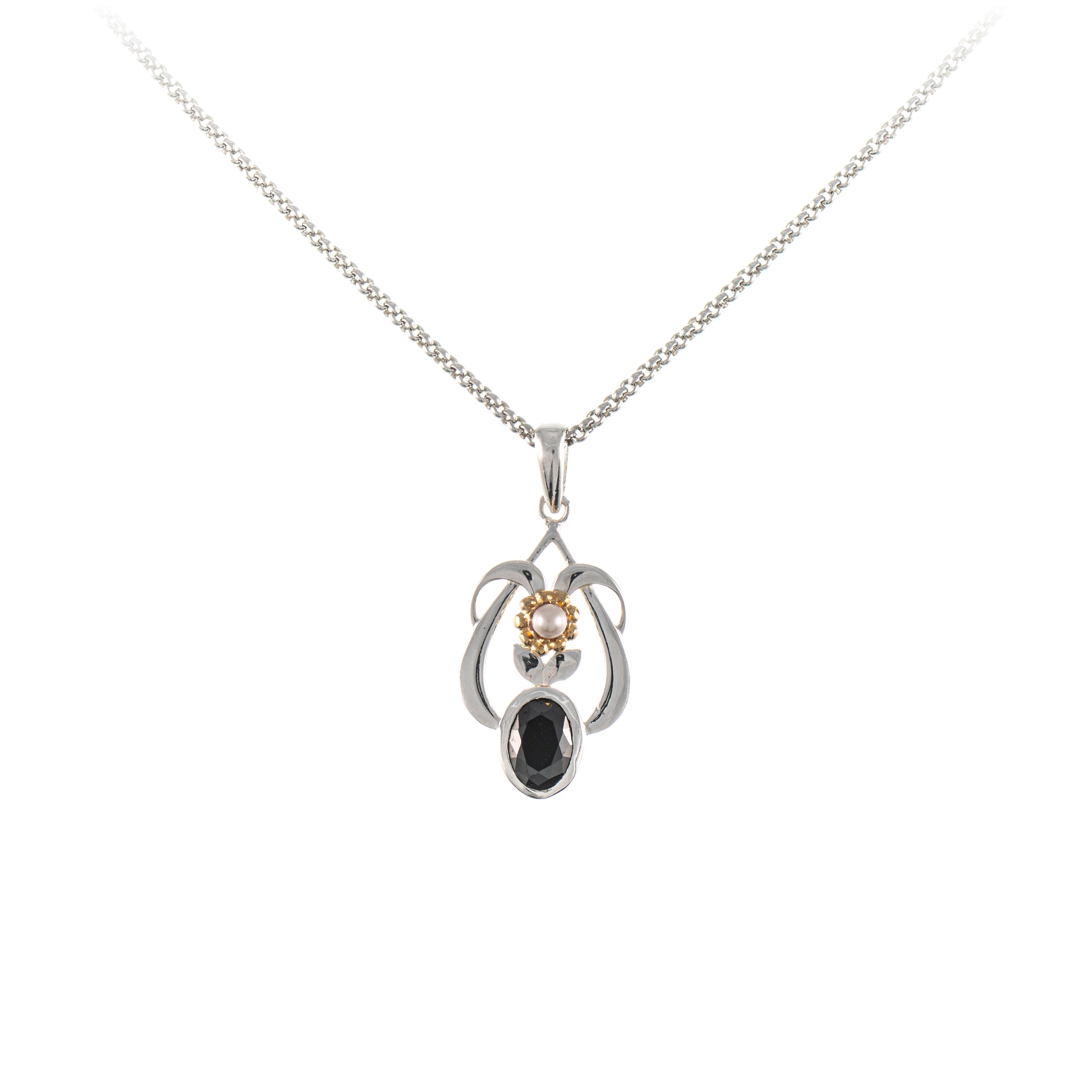 Anhaenger mit Kette 925 Silber teilvergoldet Zirkonia schwarz Perle