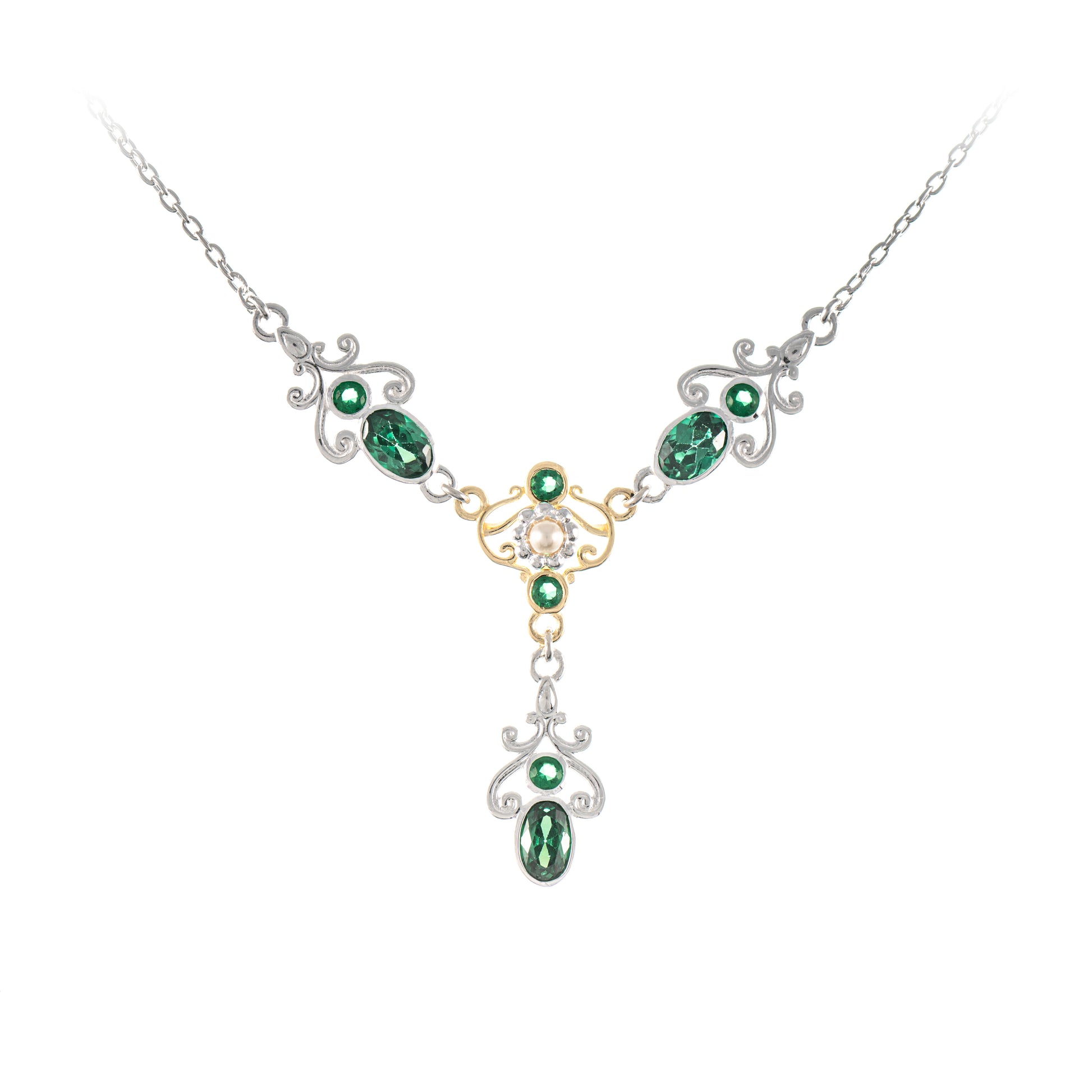 Collier 925 Silber teilvergoldet Zirkonia gruen Perle