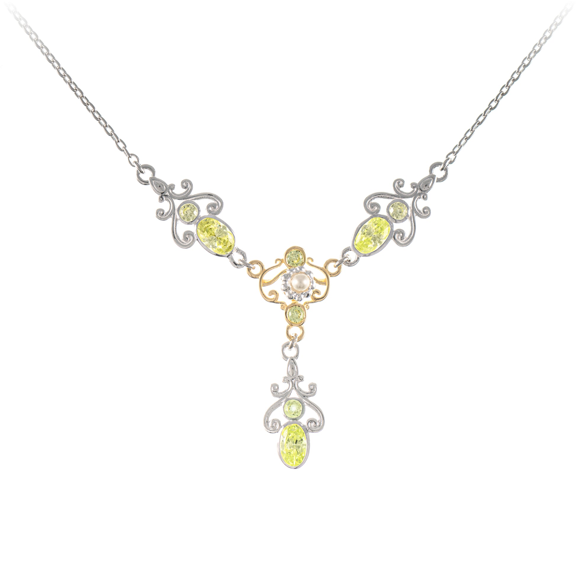 Collier 925 Silber teilvergoldet Zirkonia hellgruen Perle