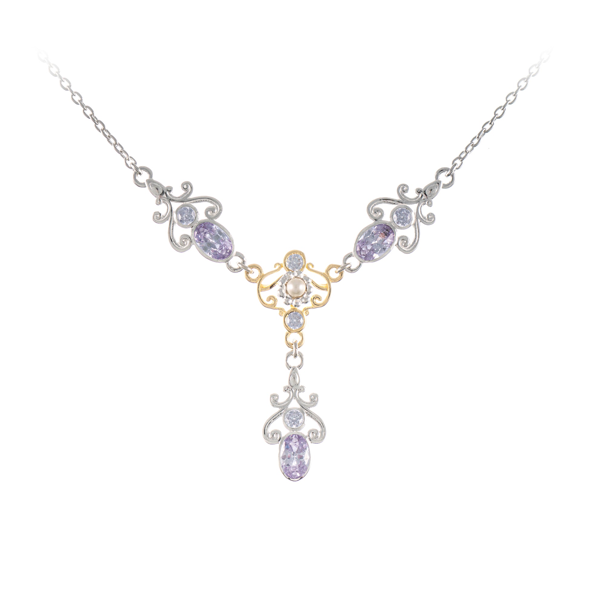 Collier 925 Silber teilvergoldet Zirkonia flieder Perle