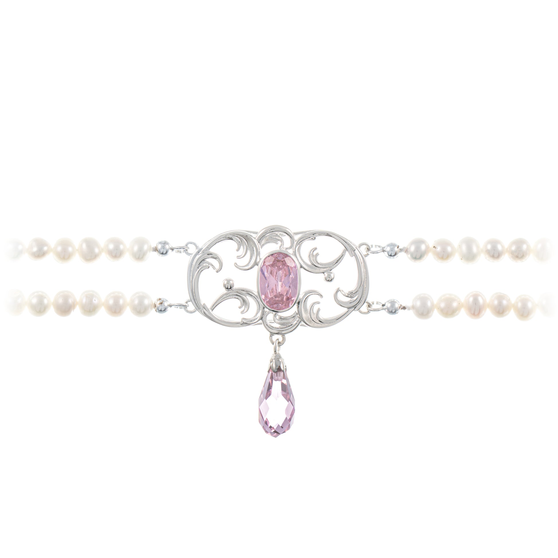 Collier Choker 925 Silber Zirkonia rosa Perle