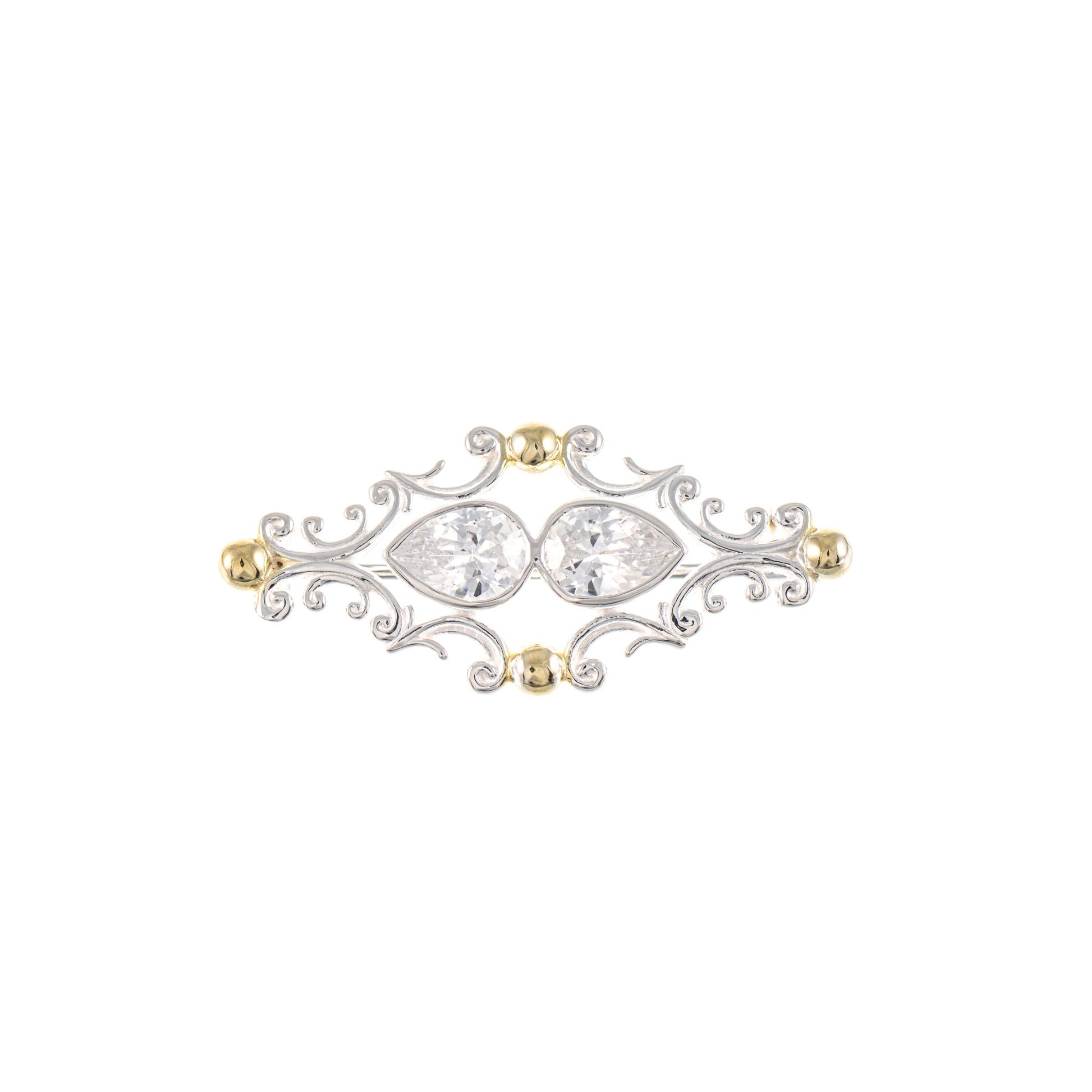 Brosche 925 Silber teilvergoldet Zirkonia weiss