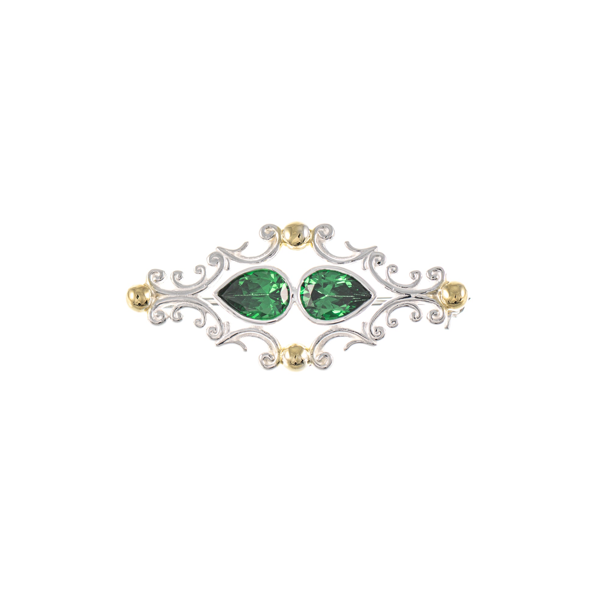 Brosche 925 Silber teilvergoldet Zirkonia gruen