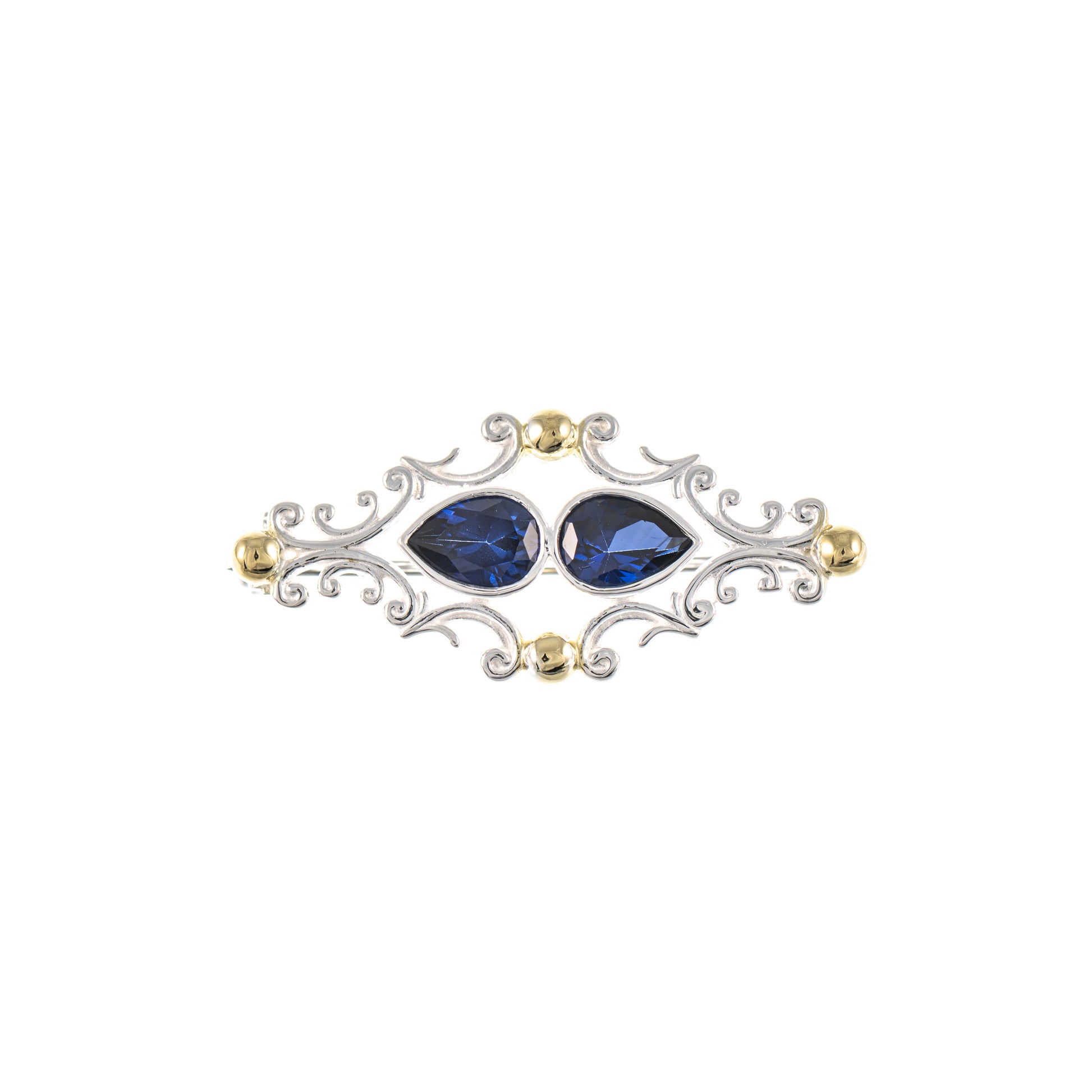 Brosche 925 Silber teilvergoldet Zirkonia blau