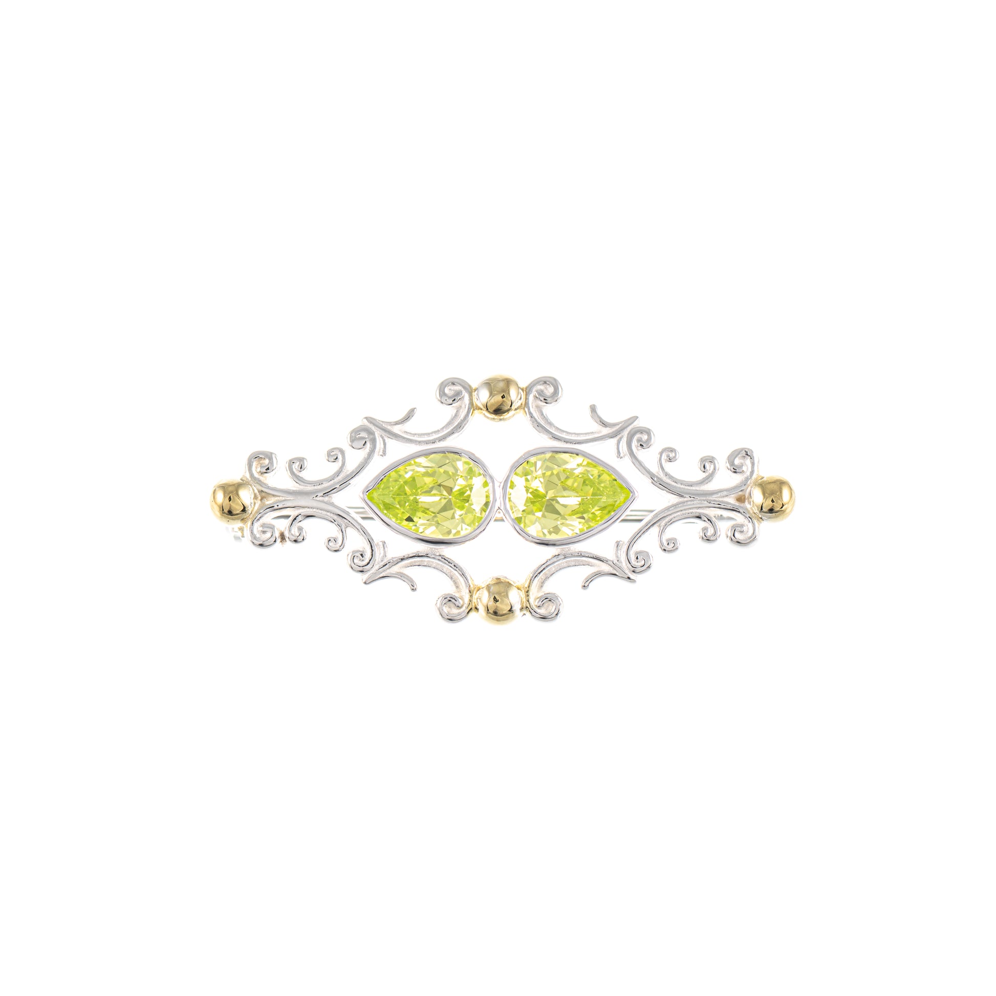 Brosche 925 Silber teilvergoldet Zirkonia hellgruen