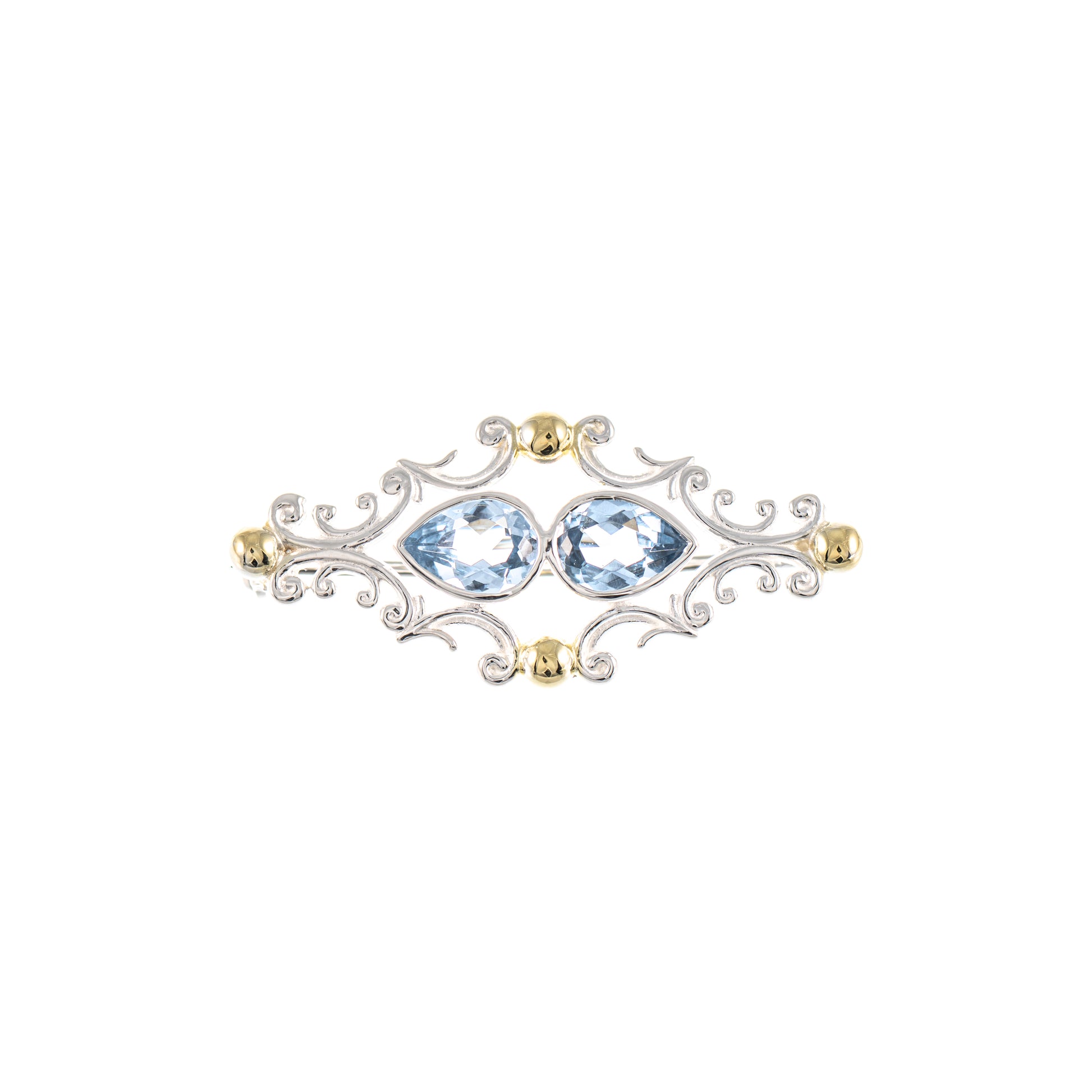 Brosche 925 Silber teilvergoldet Zirkonia hellblau
