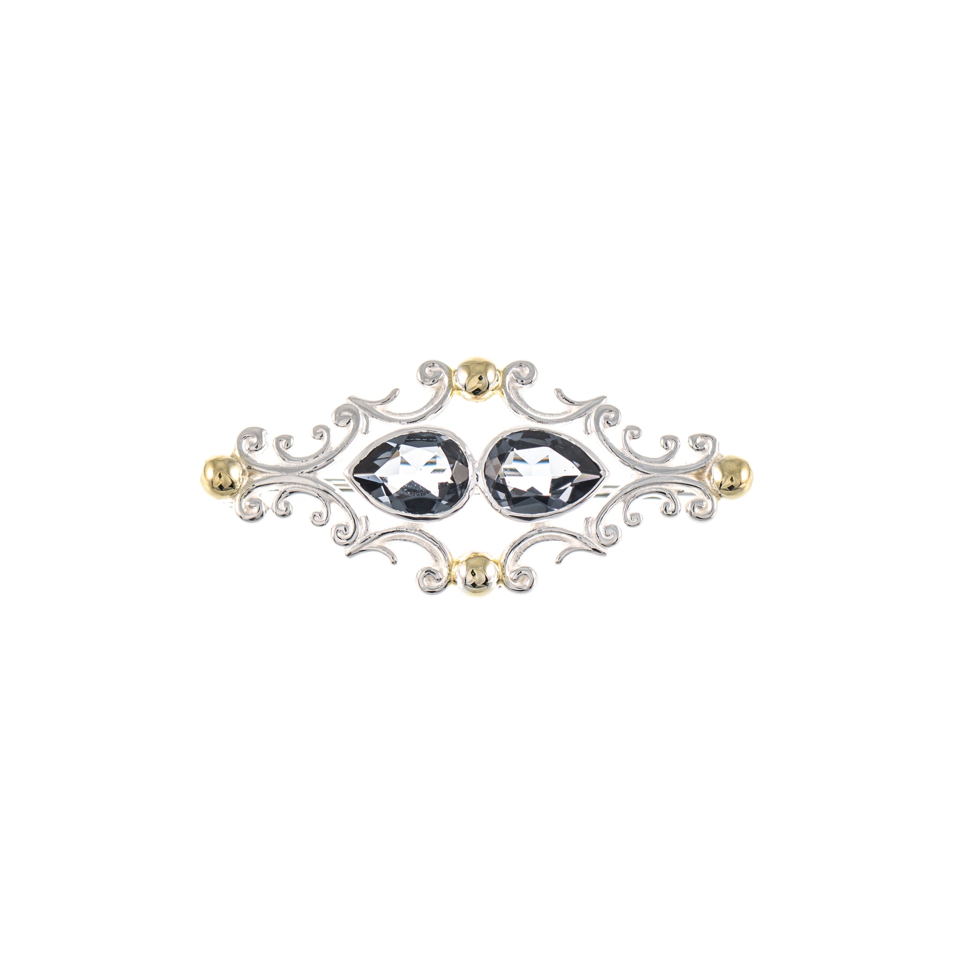 Brosche 925 Silber teilvergoldet Zirkonia anthrazit