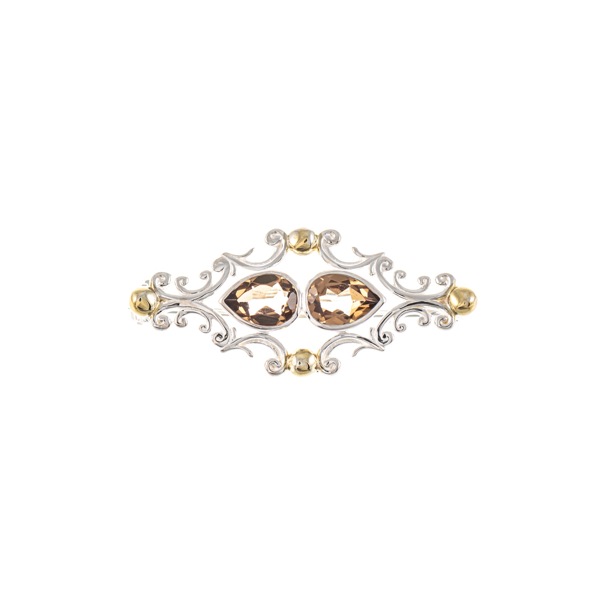 Brosche 925 Silber teilvergoldet Zirkonia cognac
