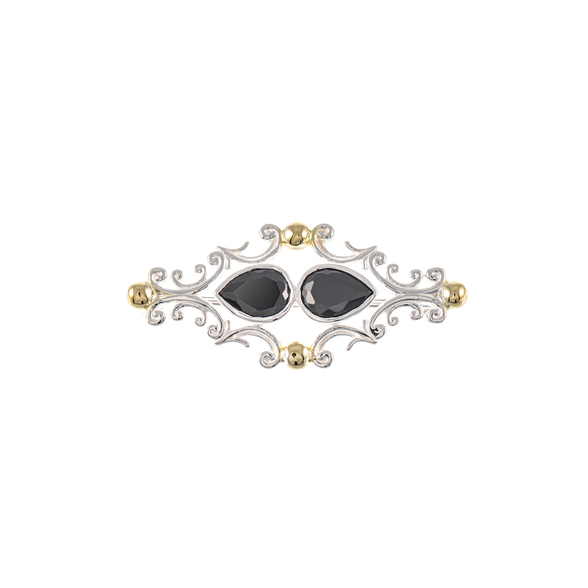 Brosche 925 Silber teilvergoldet Zirkonia schwarz